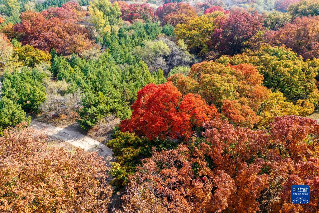 这是10月14日拍摄的乌旦塔拉五角枫森林公园美景(无人机照片)。