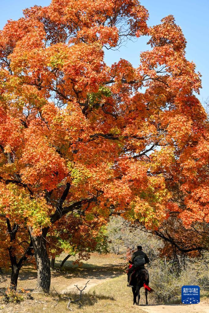 10月14日,一名护林员在乌旦塔拉五角枫森林公园内巡查。
