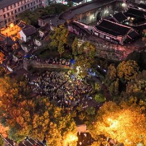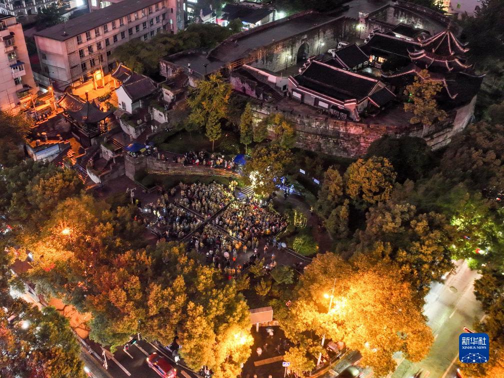 10月13日拍摄的贵阳市文昌阁路边音乐会现场(无人机照片)。