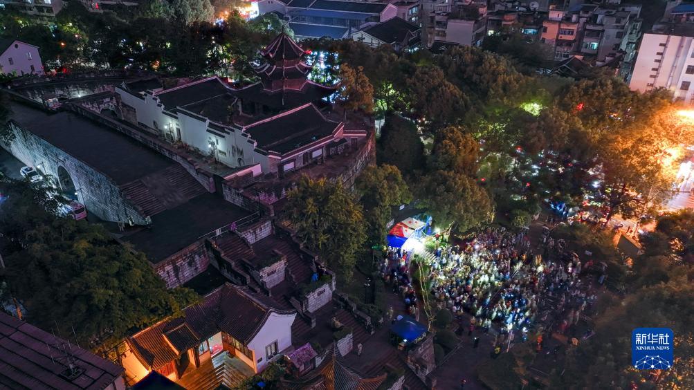 10月13日拍摄的贵阳市文昌阁路边音乐会现场(无人机照片)。