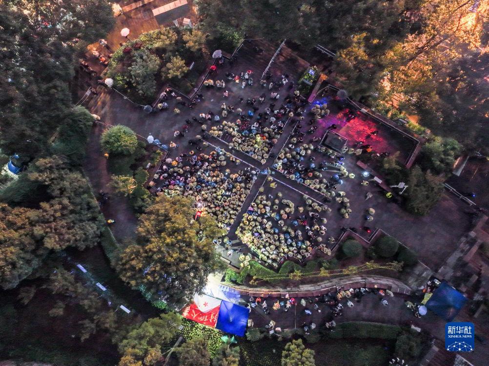 10月13日拍摄的贵阳市文昌阁路边音乐会现场(无人机照片)。