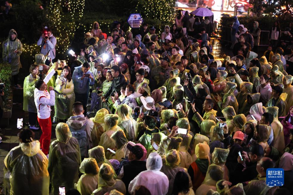 10月13日,刚刚在杭州亚运会龙舟项目上夺冠的王亮在贵阳市文昌阁路边音乐会现场演唱。