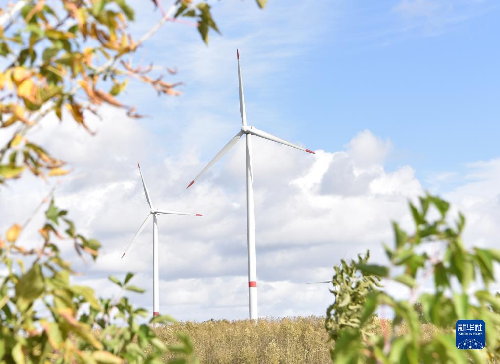 这是10月14日在德国勃兰登堡州拍摄的风电设施。