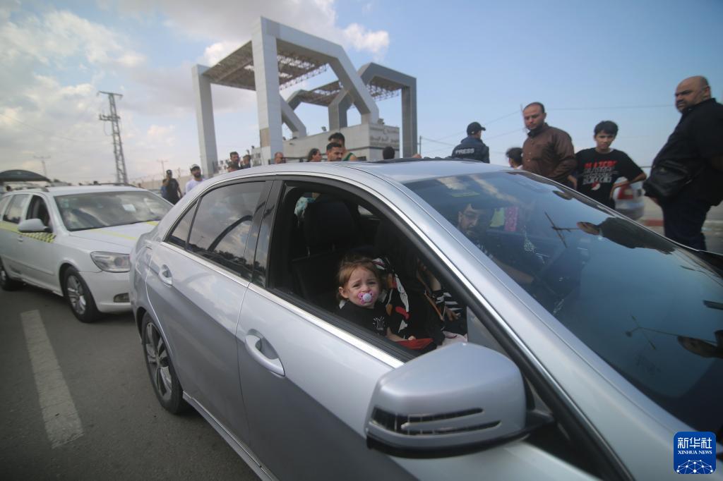 10月14日,外国公民在加沙地带和埃及边境的拉法口岸等待撤离加沙地带。