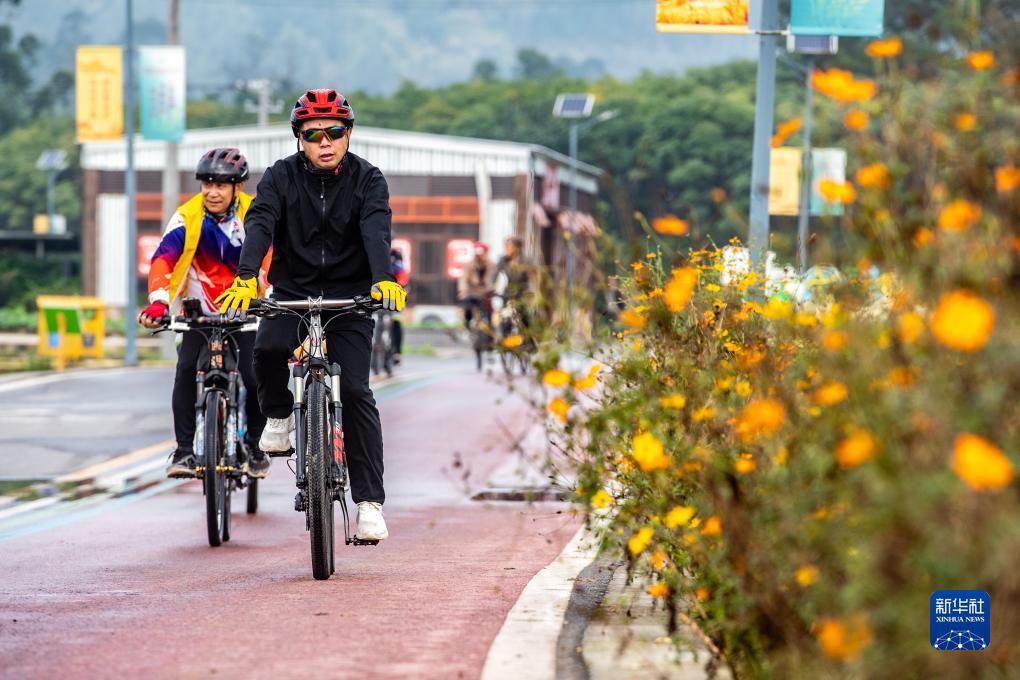 10月14日,骑行爱好者在重庆市将军村骑行。