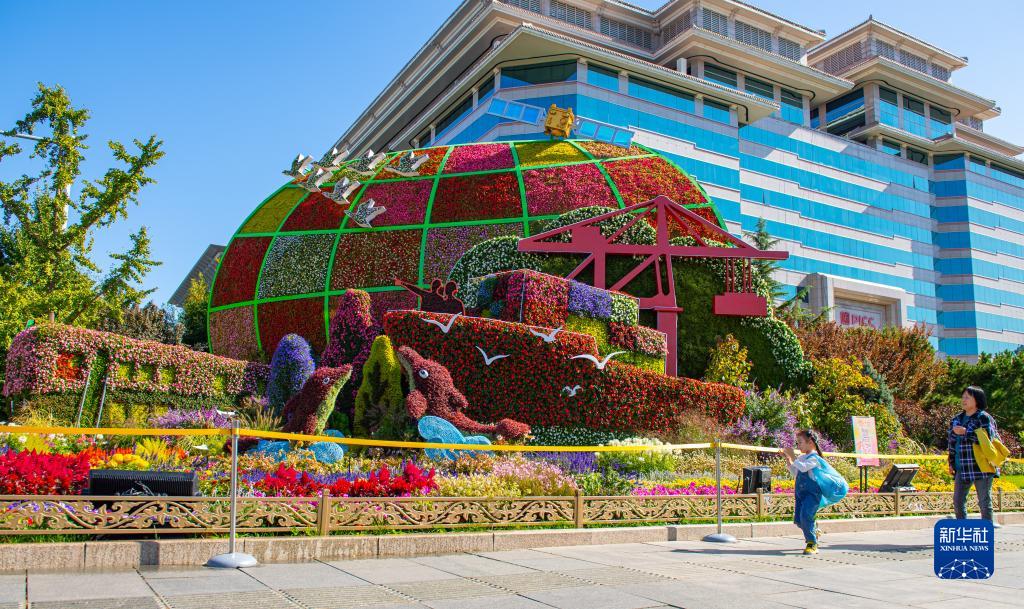 这是10月15日在北京西单拍摄的一处花坛景观。