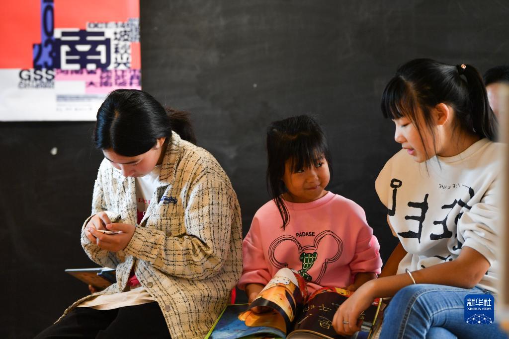 10月14日,大南坡村的小朋友在村内图书馆看书。