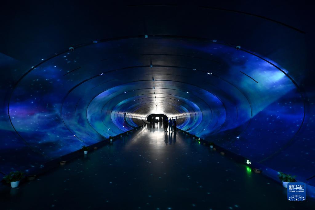 这是10月14日在成都科幻馆内拍摄的地下一层步行通道“时空隧道”。
