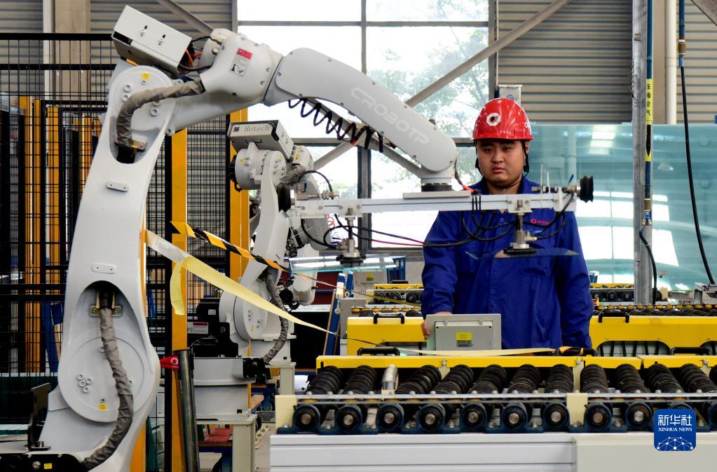 这是10月14日在河南省中联玻璃有限责任公司拍摄的浮法玻璃智能化生产车间。