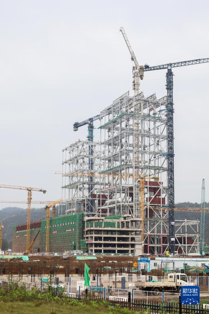 这是10月13日在甘肃省平凉市灵台县拍摄的灵台电厂项目建设现场。