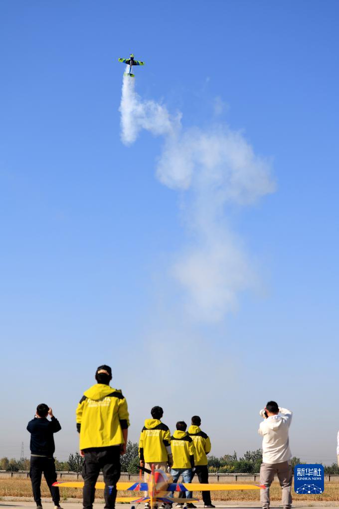 10月15日,飞手在大赛开幕式上操控无人机进行特技飞行表演。