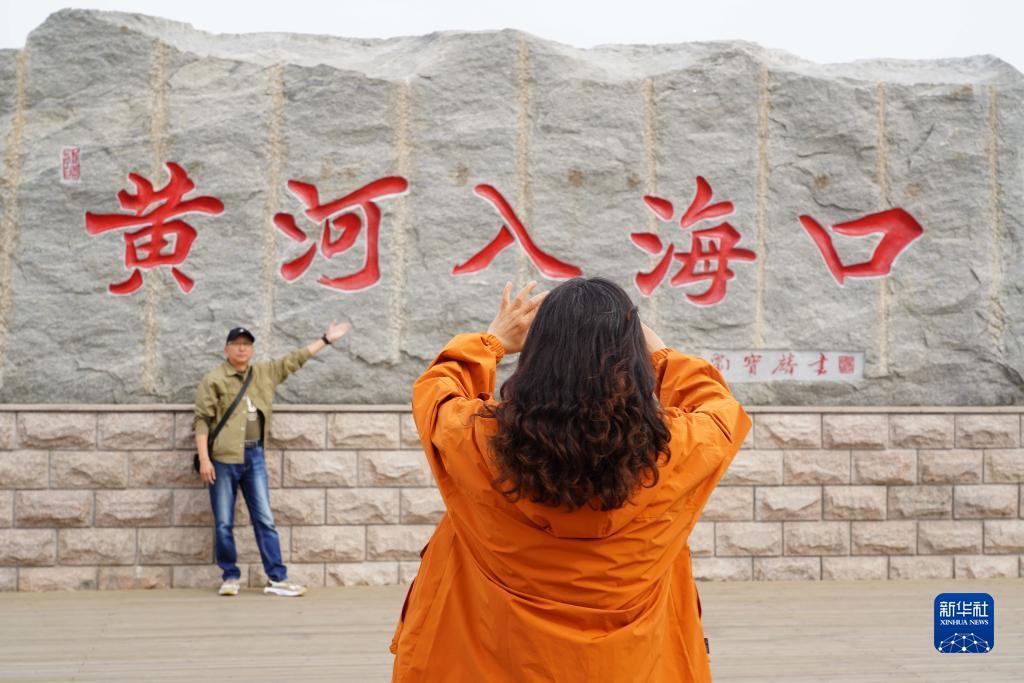 在山东省东营市黄河入海口,黄河汇入渤海。黄色的河水和蓝色的海水之间形成了一条“分界线”,河黄海清,泾渭分明。