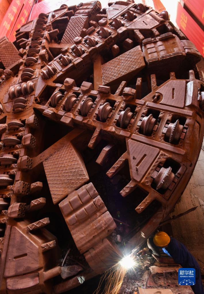 10月16日,施工人员为出洞的“开路先锋2号”盾构机进行焊接作业。