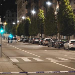 10月16日,在比利时布鲁塞尔,警方在枪击事件现场警戒。