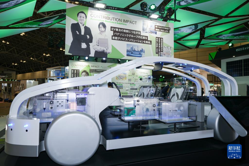 这是10月16日在日本千叶举行的高新技术博览会媒体导览日上拍摄的松下公司的电动汽车方案。