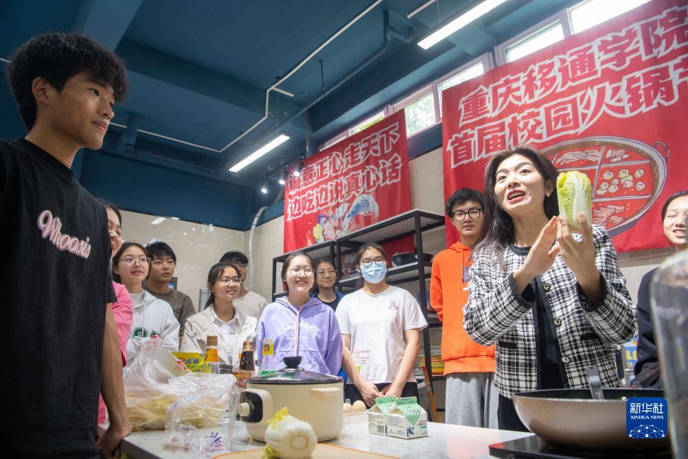 在重庆移通学院“綦河书院”的厨艺活动室内,学生在学习厨艺(10月11日摄)。