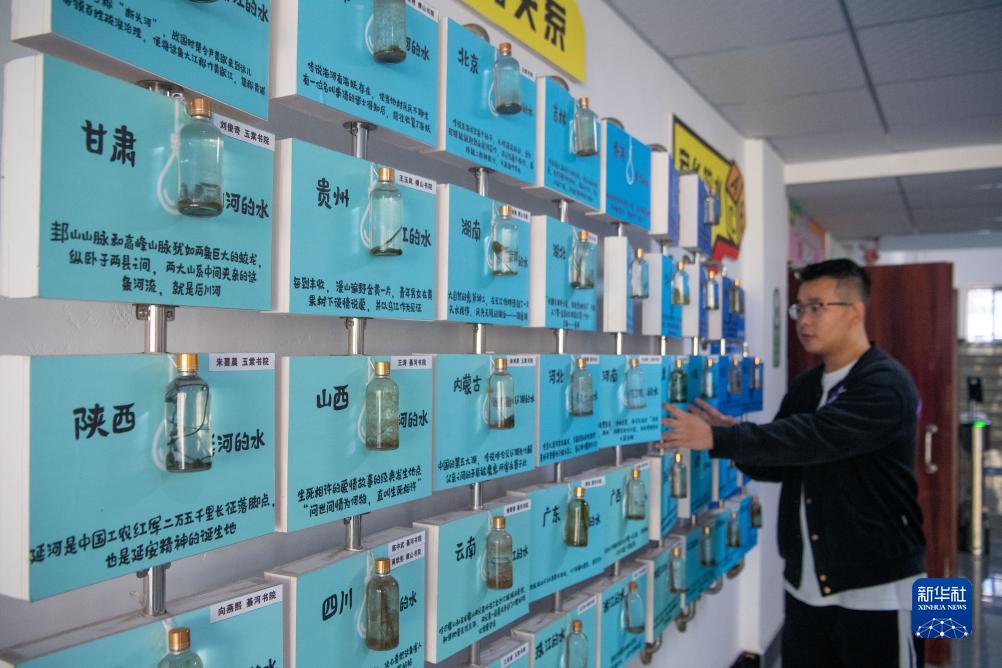 重庆移通学院“綦河书院”的乡水情长展示厅内展示了学生从各自家乡带来的水(10月11日摄)。