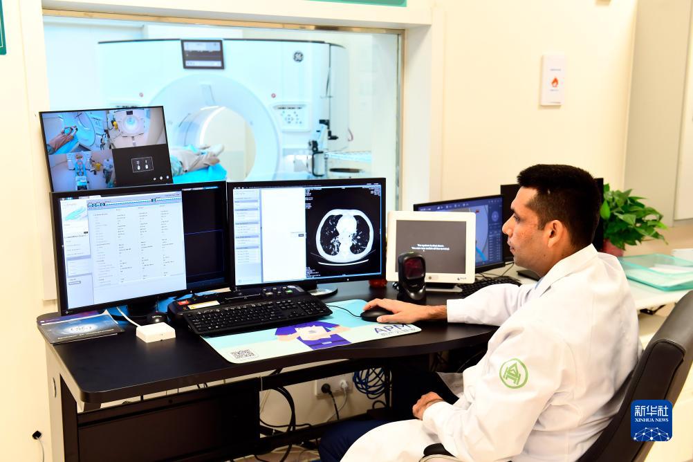 10月16日,在山东大学齐鲁医院放射科,默罕默德·沙巴兹在CT设备前工作。
