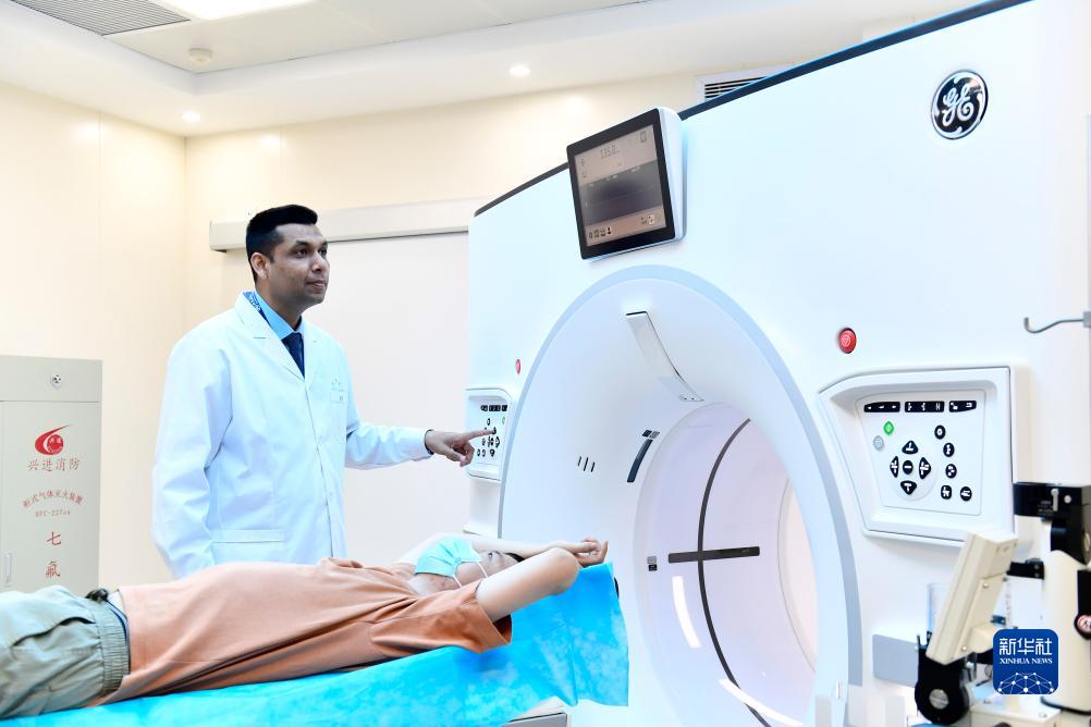 10月16日,在山东大学齐鲁医院放射科,默罕默德·沙巴兹在为患者做CT。