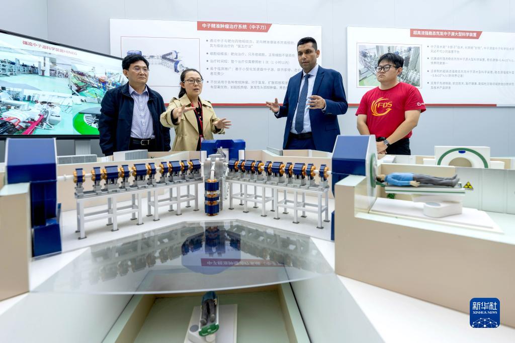 10月14日,在中子科学国际研究院(青岛),穆罕默德·沙巴兹(右二)在了解新的医疗技术。