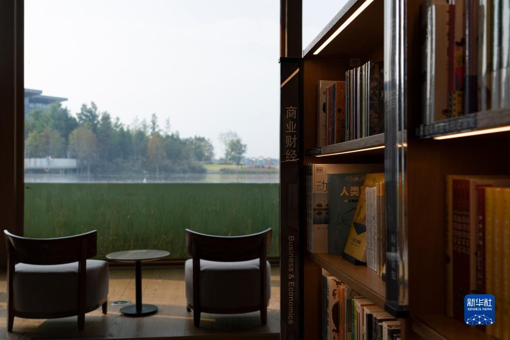 这是位于四川天府新区兴隆湖畔的中信书店一景(10月16日摄)。书店四周被碧水青草环绕,临湖一侧是一面玻璃幕墙,一直延伸至水下。
