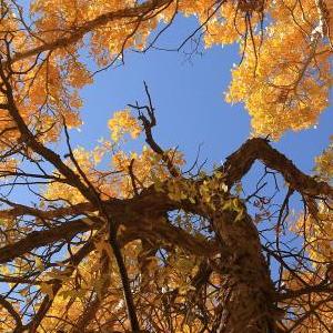 金秋十月,位于三危山下的甘肃省敦煌市莫高镇的胡杨林被秋色润染,迎来一年中的最佳观赏期。金色胡杨在阳光的照射下,美不胜收。