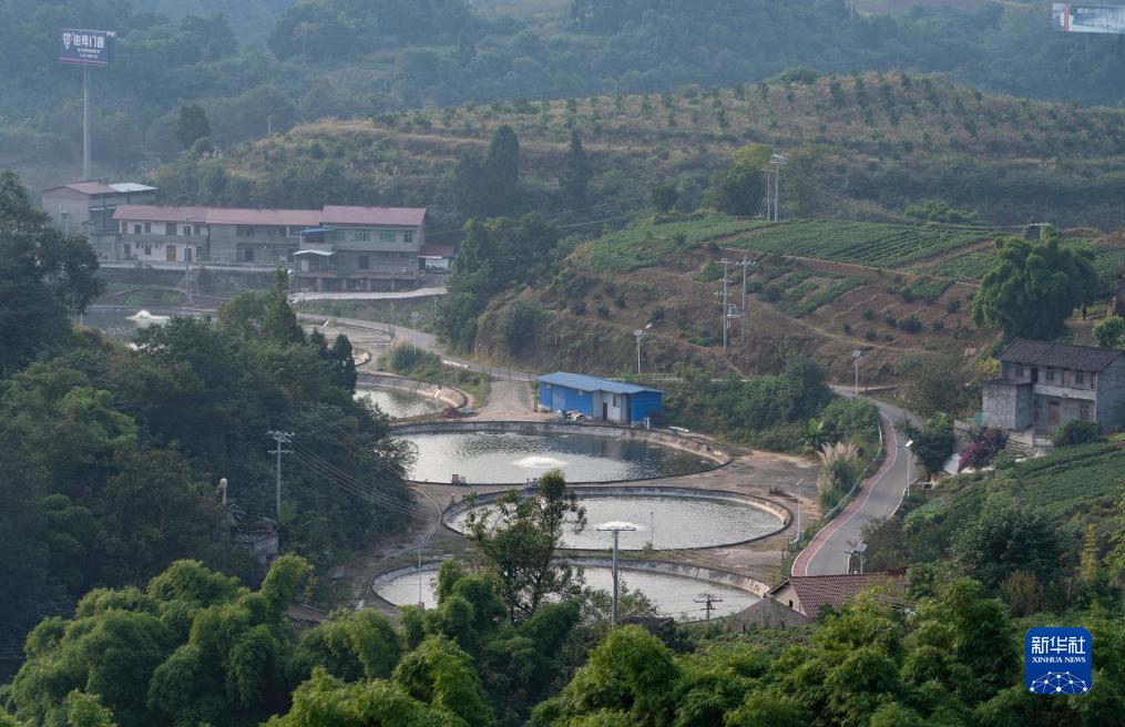 在位于四川资中县银山镇的橙堡鱼乡融合发展示范园拍摄的养鱼池(10月17日摄)。