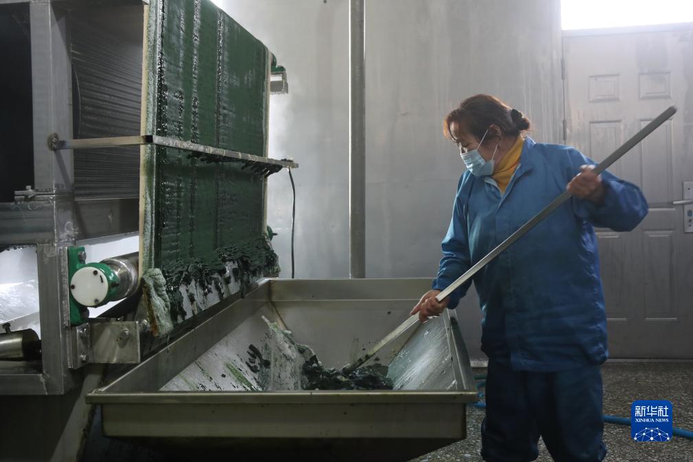 10月17日,园区工作人员在工作间收藻。
