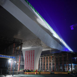 10月18日凌晨,由中国中铁电气化局集团有限公司承建的石家庄市中华北大街上跨西环线铁路T型刚构桥成功转体。据介绍,该桥重达21000多吨,施工单位采用精准控制手段,在规定的时间内完成转体,最大程度减小对铁路运营的影响。