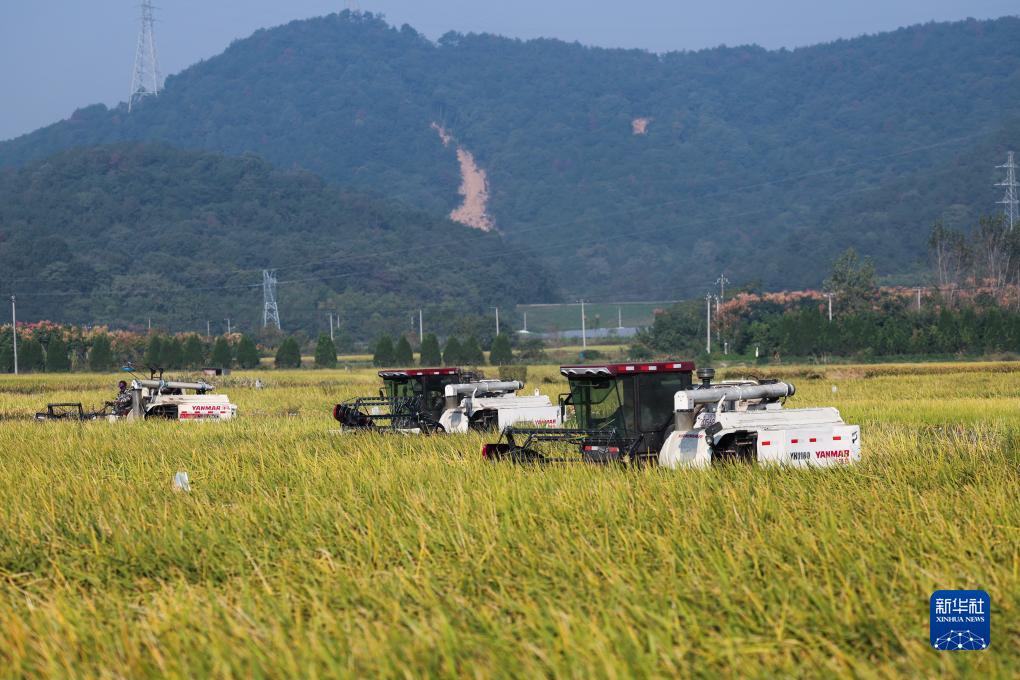 秋收时节,浙江省诸暨市陶朱街道推行“企业+合作社+农户”专业化粮食生产加工一条龙模式,指导农户抢抓天气晴好的有利时机,加快秋收进度,提高秋收效率,确保粮食颗粒归仓。