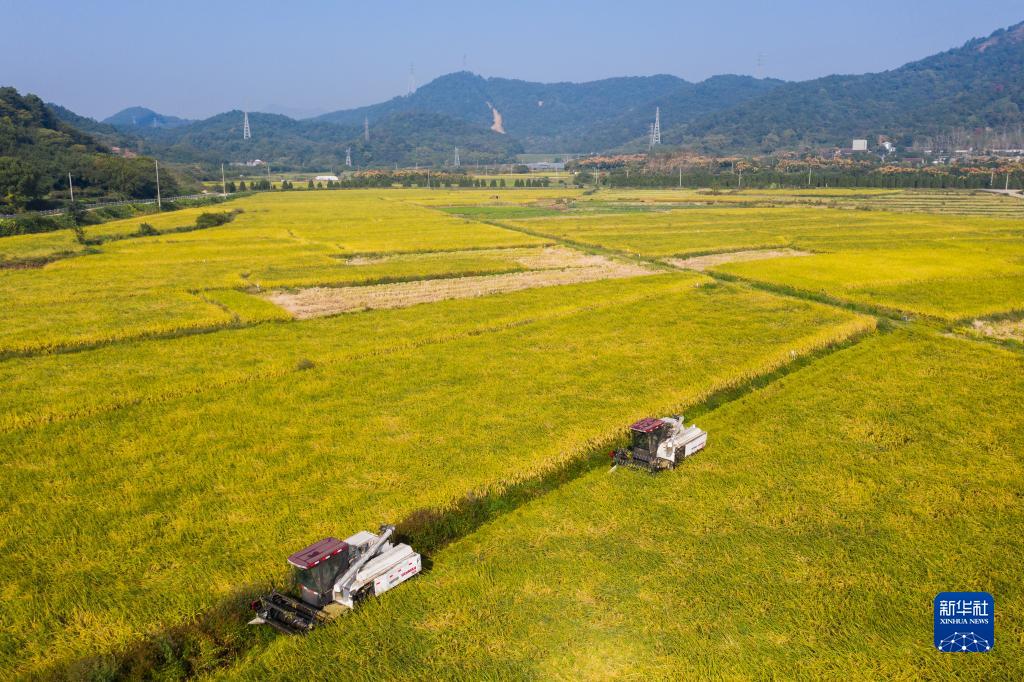 秋收时节,浙江省诸暨市陶朱街道推行“企业+合作社+农户”专业化粮食生产加工一条龙模式,指导农户抢抓天气晴好的有利时机,加快秋收进度,提高秋收效率,确保粮食颗粒归仓。