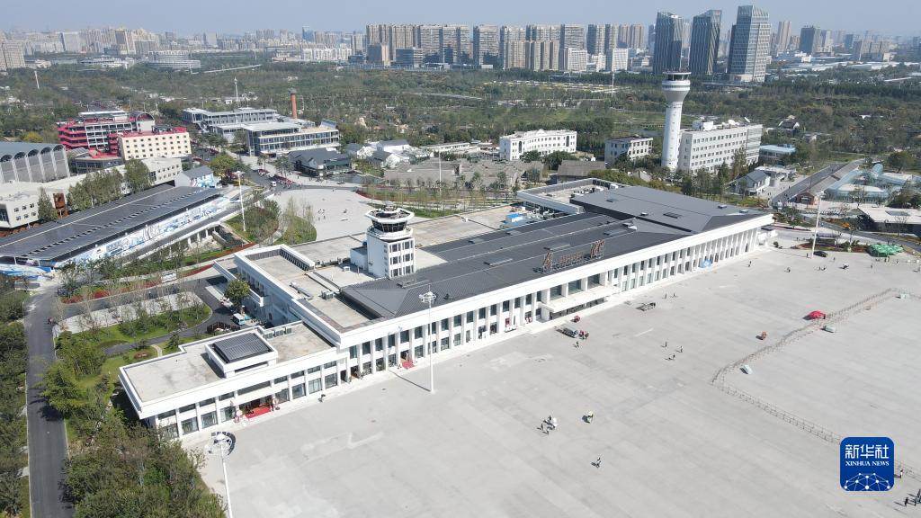10月17日拍摄的合肥骆岗公园内的城市建设馆,该馆由原合肥骆岗机场候机楼改造而成(无人机照片)。