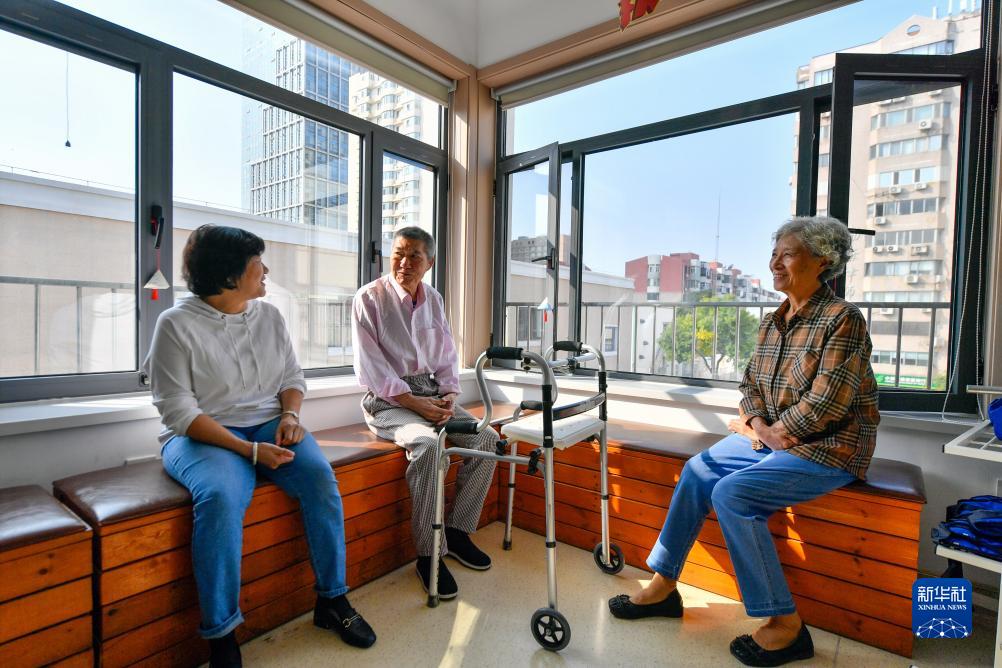 10月17日,老人们在天津市河西区越秀路街道居家养老服务中心休闲晒太阳。