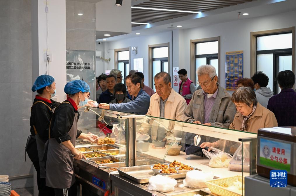 10月17日,工作人员在天津市河西区越秀路街道居家养老服务中心为老年人提供助餐服务。