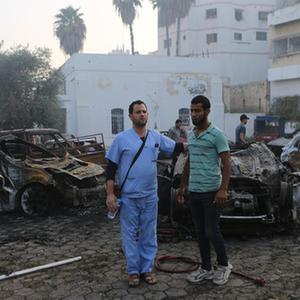 这是10月18日在加沙城拍摄的医院遭袭现场。