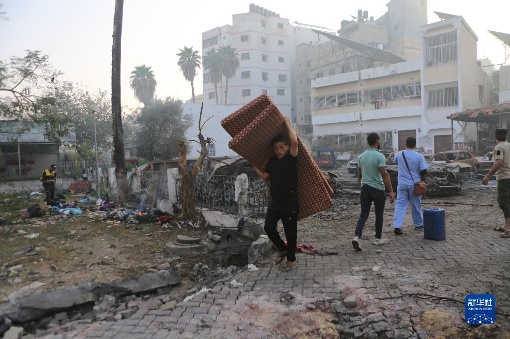 这是10月18日在加沙城拍摄的医院遭袭现场。