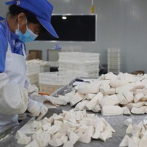 10月18日,在龙岩市长汀县一槟榔芋加工厂,工人在加工芋头。