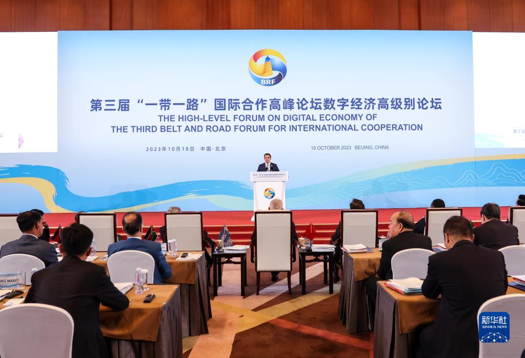 10月18日,第三届“一带一路”国际合作高峰论坛在北京举办高级别论坛,嘉宾围绕互联互通、绿色发展、数字经济主题进行深入交流。这是数字经济高级别论坛现场。