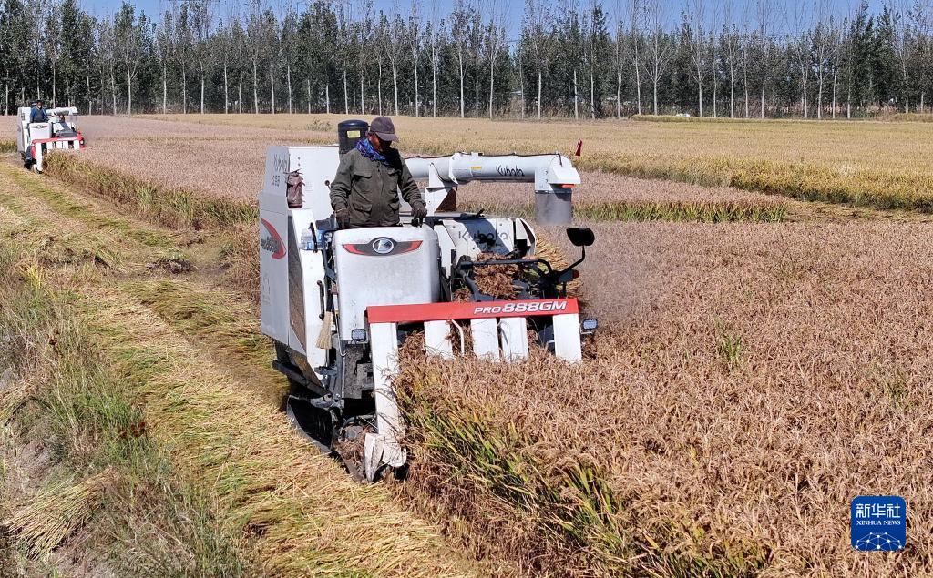 近日,河北省唐山市在盐碱地上种植的水稻、玉米等秋粮迎来收获季节,农民们开始适时收获、晾晒,呈现出一派繁忙的丰收图景。