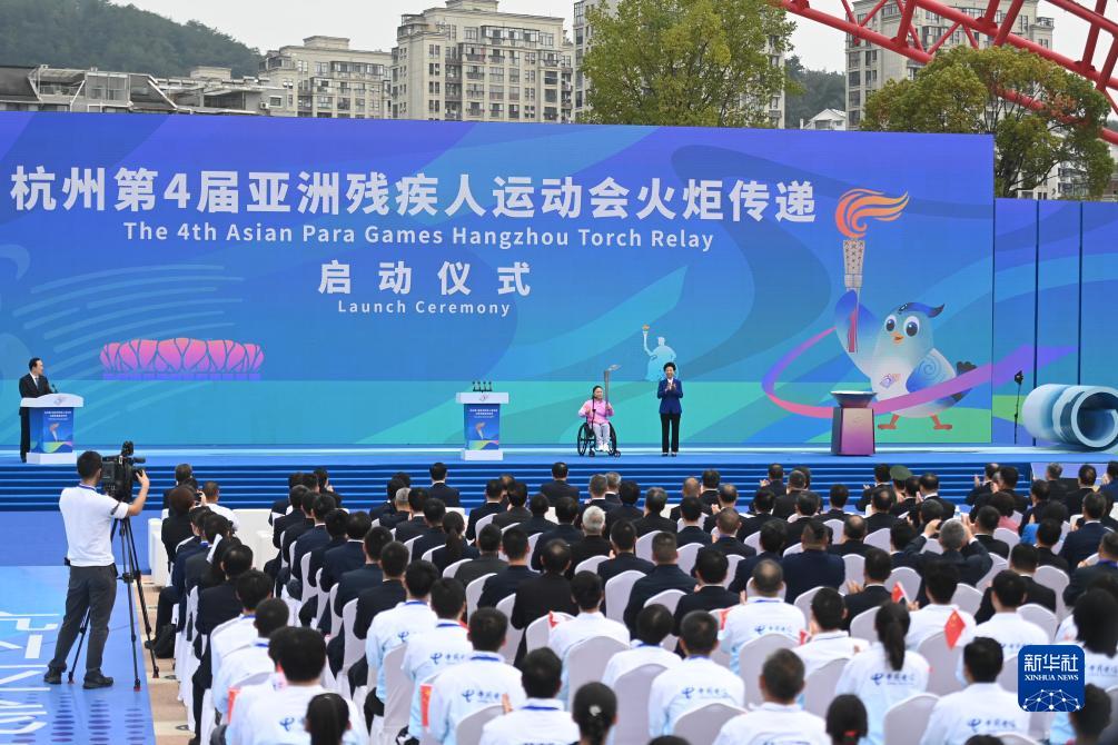 这是10月19日拍摄的杭州亚残运会火炬传递启动仪式现场。