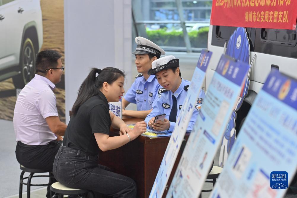 10月19日,在柳州市国际会展中心,市民在“流动警务超市”咨询、办理业务。