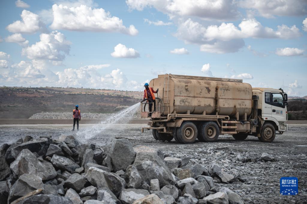 这是10月16日拍摄的肯尼亚斯瓦克大坝施工现场。