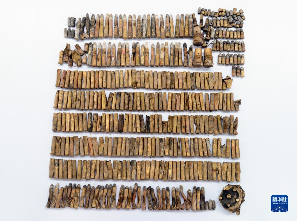 图为威海甲午沉舰遗址出水的部分小口径子弹合照。