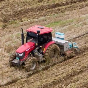 10月19日,在湖北省荆门市沙洋县曾集镇金鸡村,五洋农机专业合作社社员操作机械设备播种油菜。
