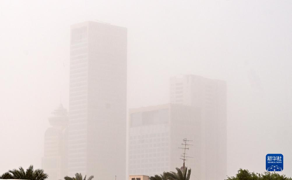 10月19日,科威特首都科威特城的建筑被沙尘暴笼罩。