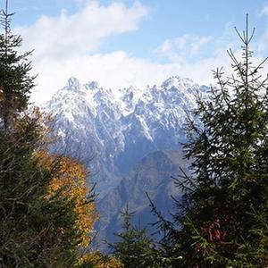 金秋时节,位于甘肃省甘南藏族自治州舟曲县境内的拉尕山秋意渐浓,一场秋雪降临后,拉尕山云缠雾绕,斑斓如画。