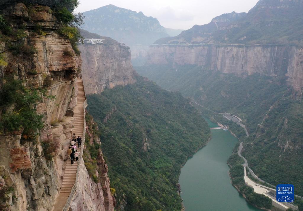 近年来,河南省辉县市依托南太行山优质旅游资源,积极探索沉浸式文旅新模式,打造以“崖”为主题的景区,建成投运了“空中巴士”、蹦极等悬崖文旅项目,让广大游客沉浸式游览在悬崖峭壁之中。