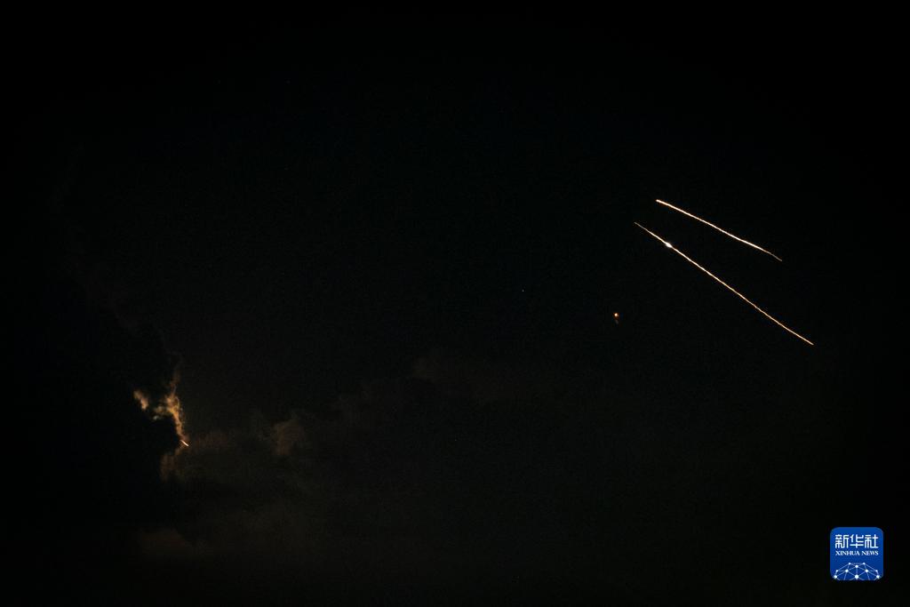 这是10月19日在加沙边境以色列一侧拍摄的夜空中的火箭弹轨迹。