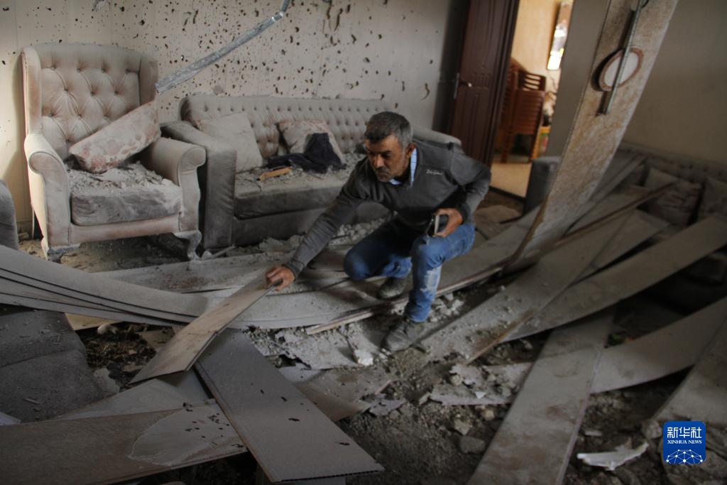 10月19日,在黎巴嫩南部黎以边境附近一村庄,一名居民正在查看房屋受损情况。