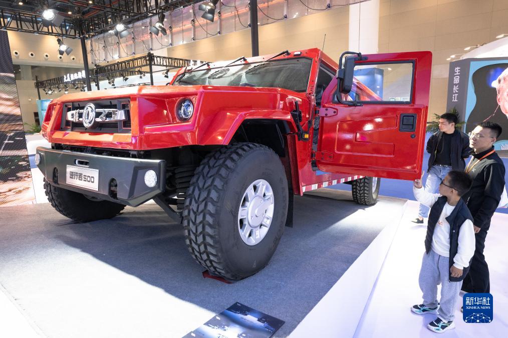 10月20日,参观者在首届“东湖论坛”东风猛士展台前参观。